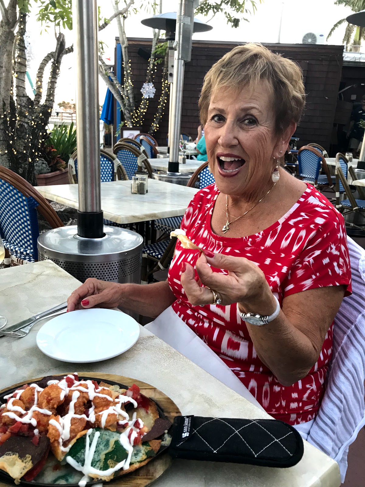 Friday morning we went about our normal Naples routine and headed to our favorite breakfast restaurant, Skillets. We ran a couple of errands and hit the beach. We went to dinner at The Dock for our favorite shrimp nachos and then walked around downtown Naples taking in the holiday atmosphere. It was lovely.