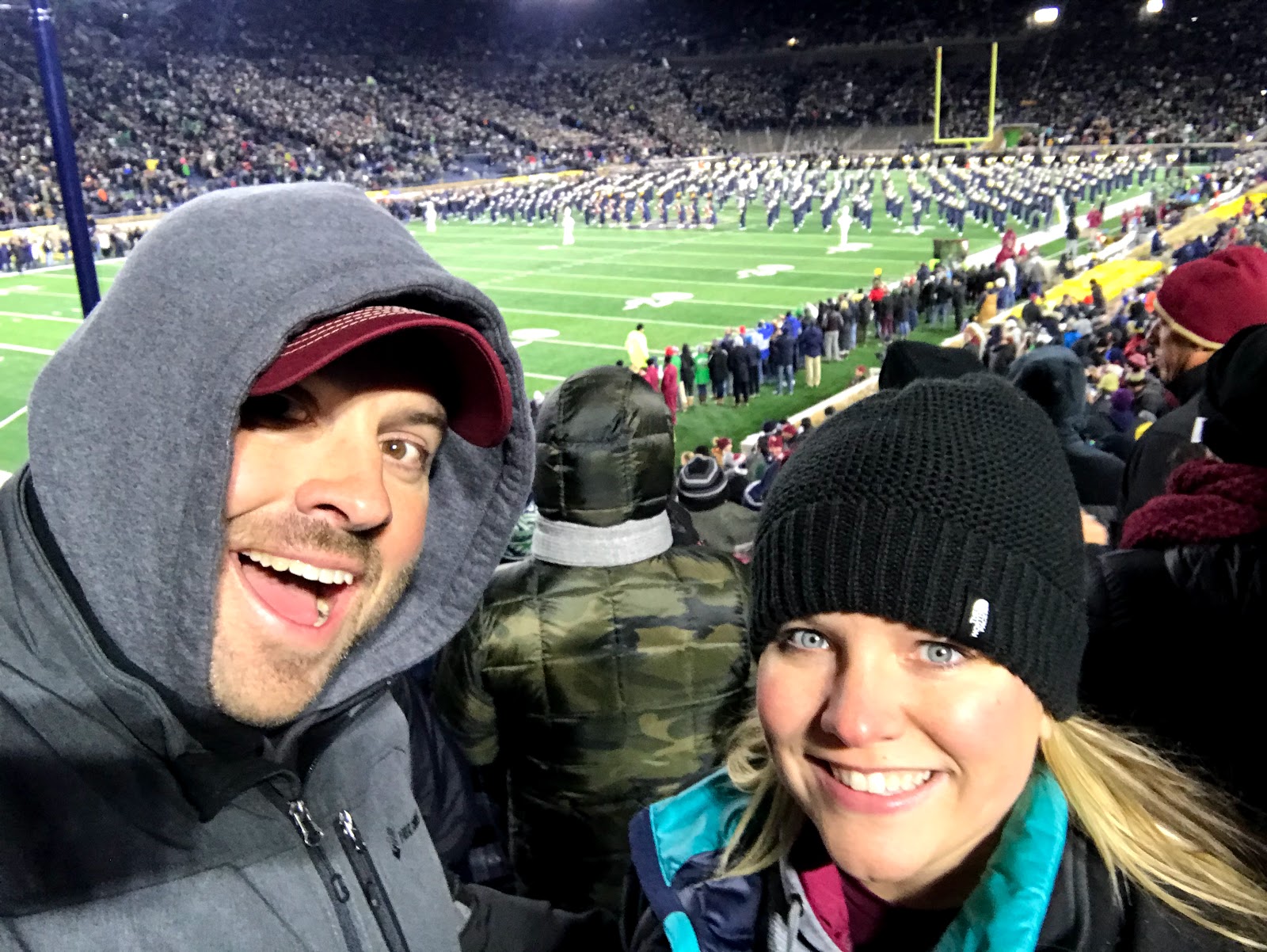 We ended up sitting near some really drunk people. An older guy kept falling into us. It was SO cold. The Noles forgot to show up. We ended up leaving just before half-time because it was just NO fun to be that cold and surrounded by obnoxious drunk people. The ushers were super unhelpful and I ended up sending a strongly-worded email to ND's Athletic department about our experience. They, naturally, never followed up with me. This was not much of an example of their professed religious affiliations...end of rant.